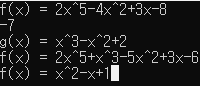 $ f= 2x^5 + 3x -4x^2- 8 // f(x)=2x^5 + 3x -4x^2 - 8
