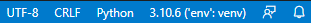 파일을 만들면 왼쪽 아래에 파이썬의 버전이 나오는데 아래의 사진처럼 출력되는지 확인해봅니다.