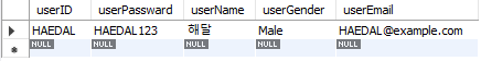 생성된 DB에 아래 코드로 USER테이블을 만들어 줍니다.