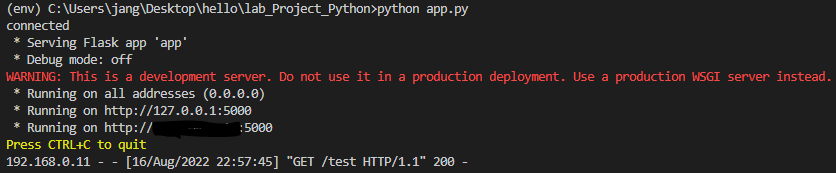 | 파이썬 - flask 웹 서버 환경 구축 (env, 가상 환경) (0) | 2022.08.13 |